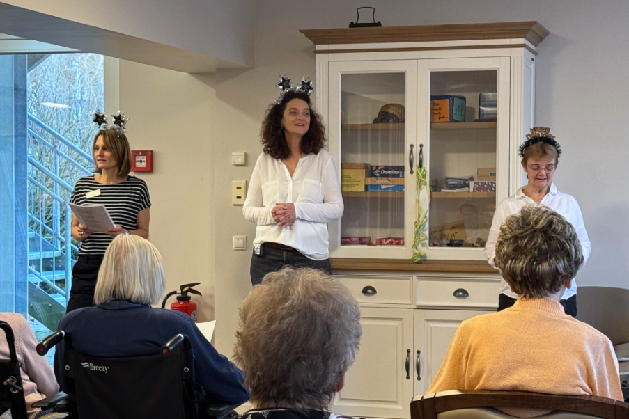 Am Silvestermorgen sorgte das Ergo-Team für ein gemütliches Beisammensein. Es wurde gemeinsam gesungen und unsere Bewohnerinnen und Bewohner erzählten rückblickend vom vergangenen Jahr. In lebendiger Erinnerung blieb das Sommerfest, und auch an die Konzerte der Familie Luchian und viele weitere musikalische Veranstaltungen wurde gerne zurückgedacht. Eine Bewohnerin freute sich besonders darüber, dass sie in unserer großen Gemeinschaft wohnt.