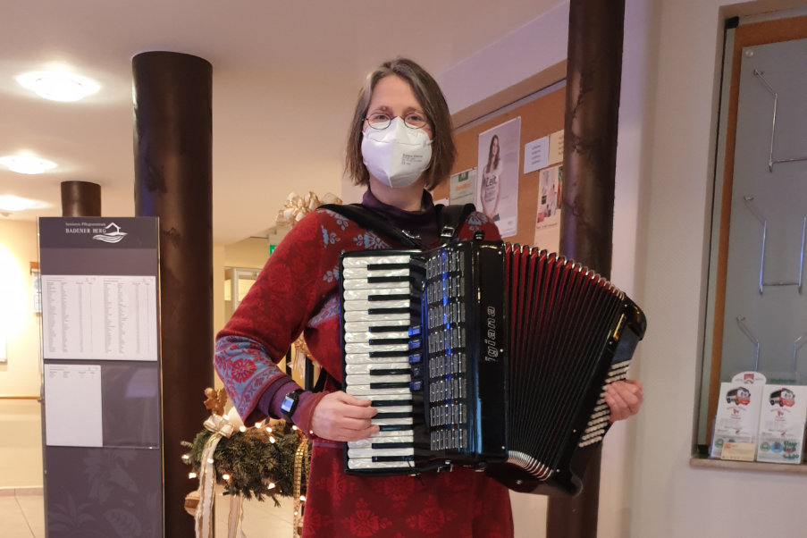 Am Dienstag, den 18. August 2020, war die Sängerin Christina Beyer mit ihrem Soloprogramm „Rund um die Liebe“ bei uns im Senioren-Pflegezentrum BADENER BERG zu Gast. Lieder wie „Die Liebe ist ein seltsames Spiel“ (Connie Francis, 1961) oder „Schuld war nur der Bossa Nova“ (Manuela, 1963) interpretierte Christina in absoluter Profi-Qualität. Spielend beherrscht sie die hohen sowie tiefen Oktaven und liefert (mit Abstand) beste Unterhaltung. Empfehlenswert!