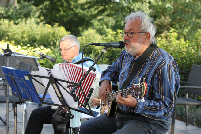 Am 22. September 2020, zum Herbstanfang und bei wunderschönem Wetter, fand ein Gartenkonzert mit den „Harmon Oldies“ statt. Jürgen Fitzke spielte ein Borsini Piano-Akkordeon und Peter Czech ein Epiphone Viola Bass, auch „Beatle Bass“ genannt (…das er angeblich vom Herrn McCartney geschenkt bekommen hat).