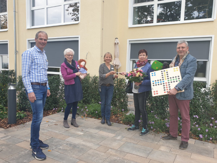 Die Spende in Höhe von 1.200 Euro überbrachte Birgit Hoppe gemeinsam mit ihrem Lebensgefährten, Karl-Heinz Wömpner, und lobte die Leistung unseres Hauses und unserer Mitarbeiter. Der gespendete Geldbetrag wird nun für den Betreuungsbereich zur weiteren Anschaffung von Demenz-Puppen, Spielen und der Ausrüstung für die Sitzgymnastik verwendet.